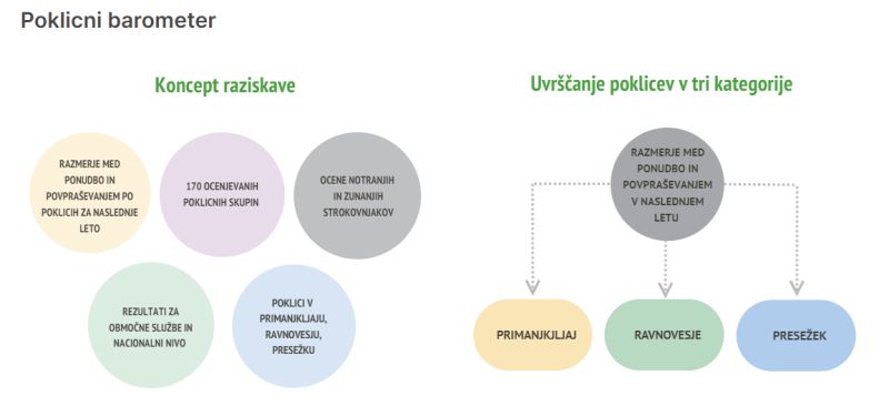 🎯 Identificirali so 93 poklicev v primanjkljaju, 58 v ravnovesju in 19 v presežku.